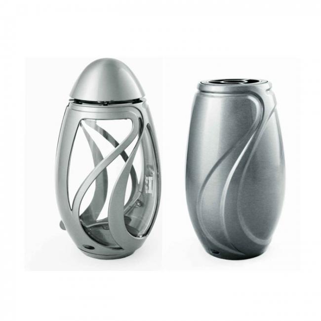 Krásná nerezová sada ART lampy a vázy.