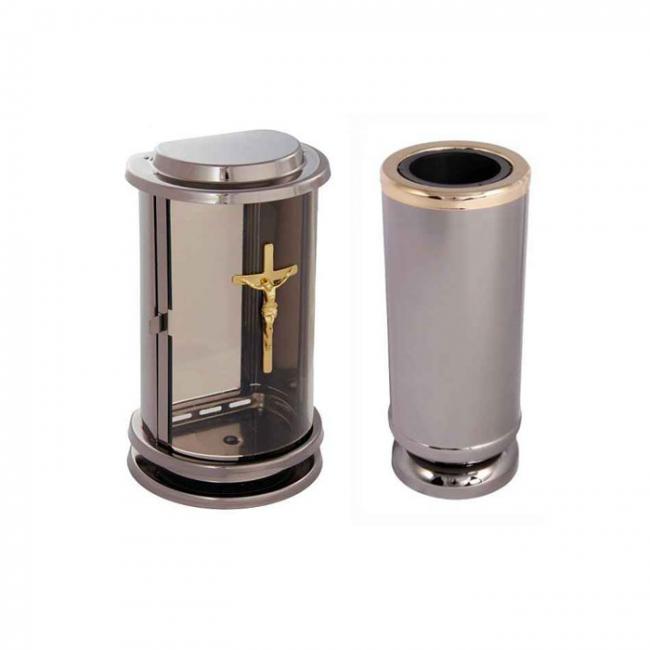 Krásná nerezová sada hřbitovní lampy a vázy.