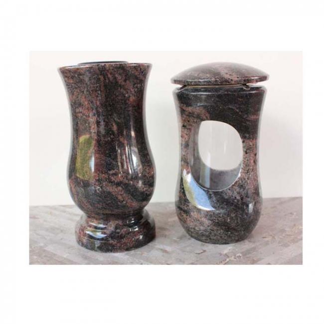 Kamenná sada lampy a vázy na hrob, z přírodního kamene India Aurora