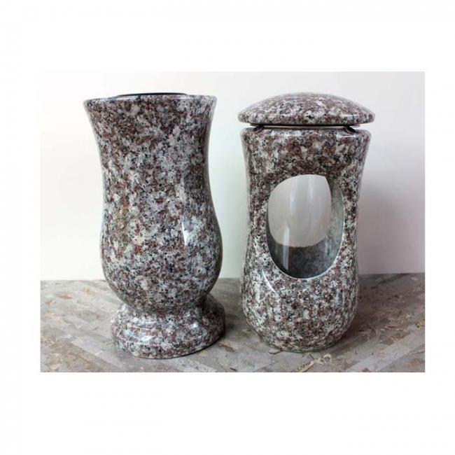 Kamenná sada lampy a vázy na hrob, z přírodního kamene Multicolor Red